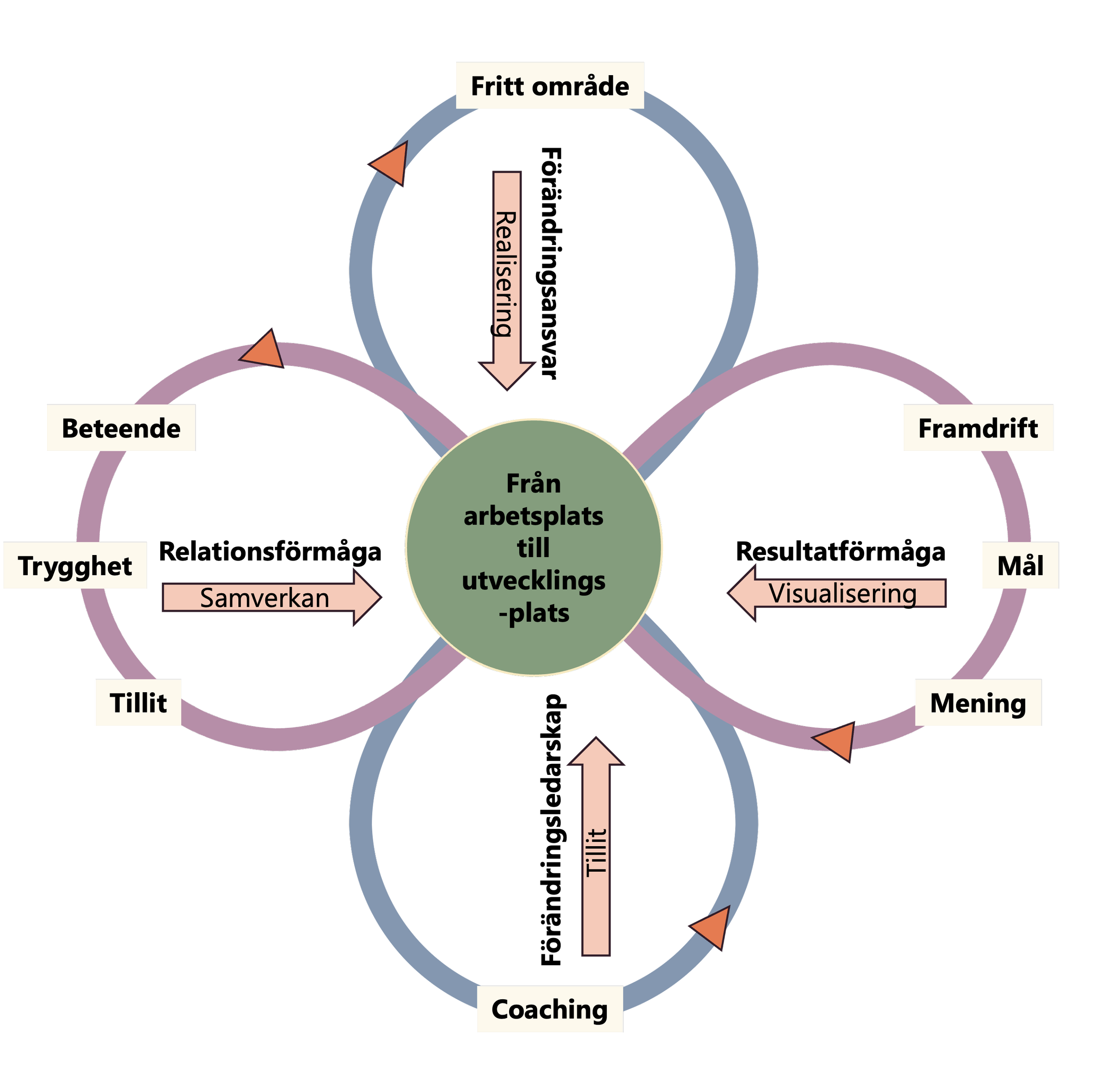 Genom att vi får medverka i dialogen om ATT förändringen behövs och HUR vi ska genomföra förändringen, samt att vi i själva utvecklar, lär in nytt och lär av gammalt gör att vår mentala förändring styrs av oss själva och blir därmed ingenting dramatiskt.